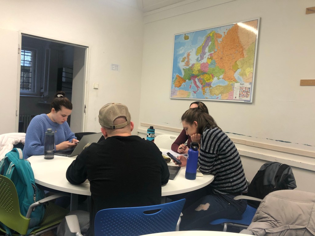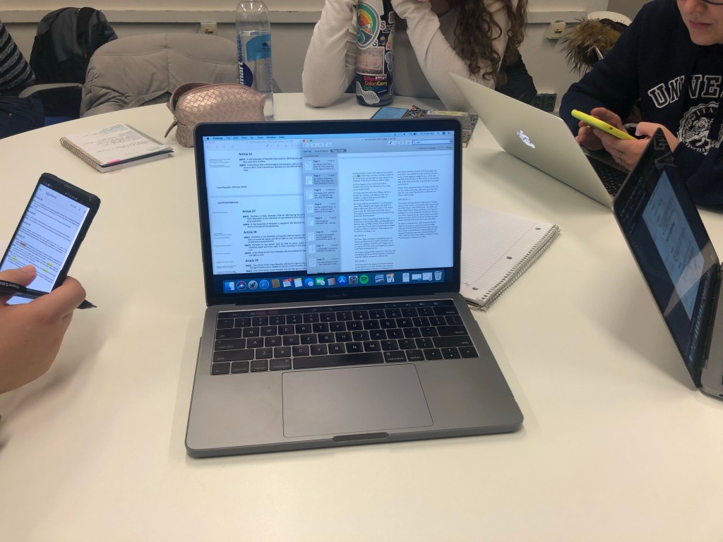 During class we took a look further into the Czech government as a continuation of our learning from our parliament visit yesterday. Our lesson dove into the political past of the Czech Republic, the formation of their current government, and recent political news and action within the country. During class we split off into groups to compare the Czech constitution to the US constitution which it is partially based on, then we shared our findings with the rest of the class.