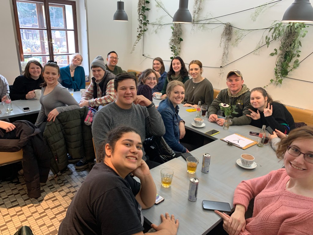 After class, we ventured over to the Bystro Cafe by the CIEE classroom for a wonderful lunch together. It was great to have time together as a group to relax and talk even more. We shared a delicious meal and shared a lot of laughter, especially when Michael was having a hard time figuring out a solution to the Green Glass Door game. At one point, almost everyone in the room was trying to help our professors solve it, shouting hints left and right. If you need a hint, look for the bolded pattern in the name of the game, Green Glass Door— only things with double letters that were next to each other were allowed to pass through the door.